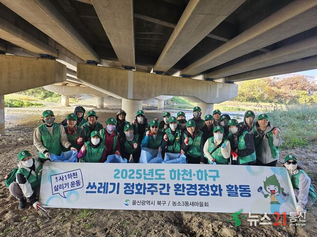 북구 농소3동 새마을협의회·부녀회는 17일 1사1하천 살리기 캠페인의 하나로 천곡천 주변 무단투기 쓰레기 수거활동을 펼쳤다.