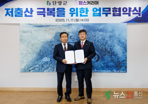 단양군은 지난 17일 사회적기업 ㈜맘스커리어와 ‘출산 가정 축하 기념품 지원’ 업무협약을 체결했다고 밝혔다.