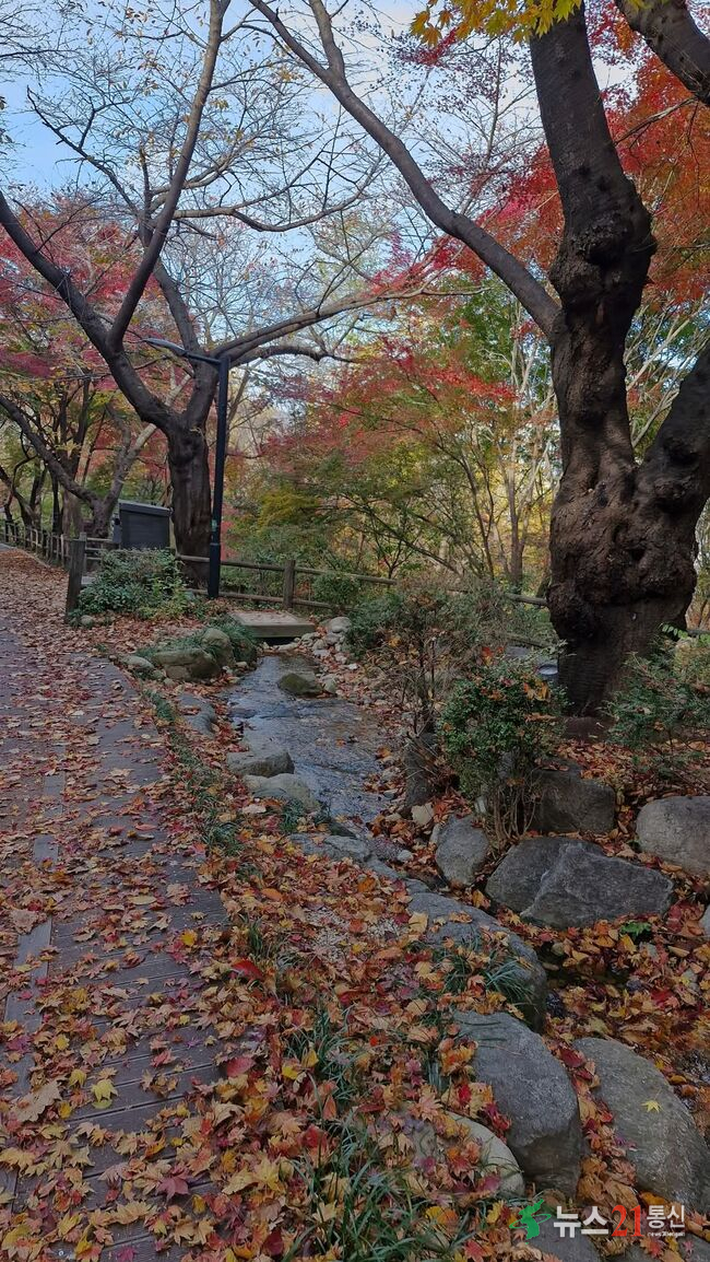 골짜기에는 물이 청결하여 봄 · 여름 · 가을에 구경꾼들이 끊이지 않는다.