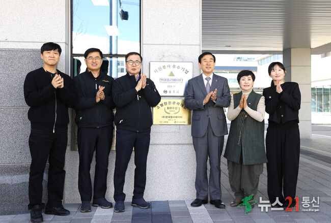 충주시는 19일 사회공헌과 자원봉사 활성화에 기여한 현대엘리베이터(대표이사 조재천)를 자원봉사 우수기업으로 선정하고 회사에 인증 현판을 전달했다.