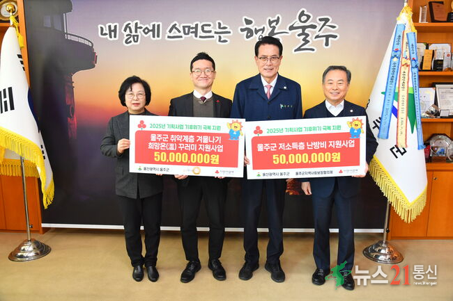 울산사회복지공동모금회가 20일 울주군 취약계층을 위한 혹한기 지원사업 후원금 총 1억원을 전달했다.