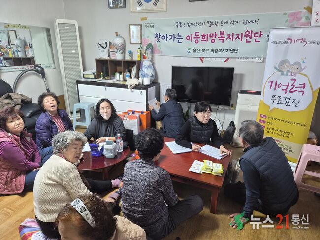 북구 농소1동 찾아가는 보건복지팀은 21일 무지개1차아파트 경로당에서 찾아가는 이동 보건복지상담소를 운영, 복지 및 건강 상담 서비스를 제공했다.