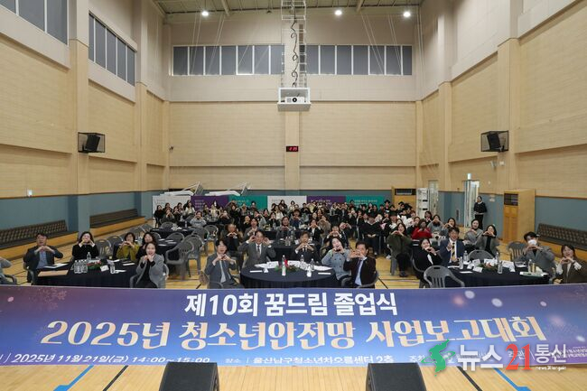 울산 남구(구청장 서동욱)는 21일 남구청소년상담복지센터와 학교밖청소년지원센터(센터장 이은영) 주관으로 청소년 차오름센터에서 제10회 꿈드림 졸업식과 2025년 청소년안전망 사업보고대회를 개최했다.