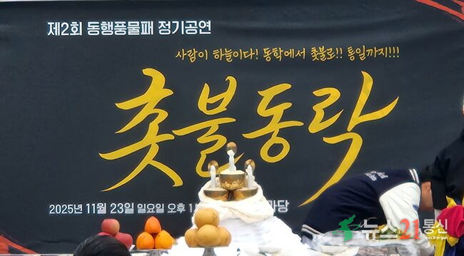 2025년 11월 23일, 늦가을의 선선한 바람이 부는 일요일 오후 남인사마당이 전통의 북소리로 가득 찼다. 동행풍물패가 마련한 제2회 정기공연 '재롱잔치'가 성황리에 개최되며 시민들에게 따뜻한 울림과 즐거움을 선사했다. 이번 공연은 지난해에 이어 두번째로 진행되는 '재롱잔치'로, 주민 누구나 함께 어울려 전통 가락을 느끼고 지역 공동체의 소중한 의미를 되새기는 자리였다.