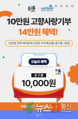 김제선 중구청장은 “중구통 앱을 이용하는 주민뿐 아니라 타 지역 주민들도 기부에 참여해 세액공제·답례품·지역화폐 등 다양한 혜택을 함께 누리길 바란다”라며, “앞으로도 지자체간 협력하여 건전한 기부 문화를 조성해 나가겠다”라고 말했다.