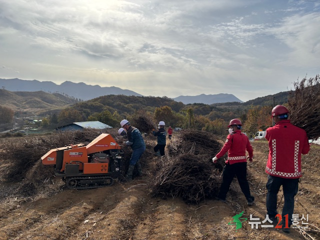한편 산불의 주요 원인 중 하나로 꼽히는 영농부산물의 불법소각을 차단하기 위해 산림과와 농업기술센터 친환경기술과가 합동으로 파쇄 작업을 진행했다. 가을철(10월~12월) 지속 추진 중인 영농부산물 안전처리 지원사업을 통해 산불 예방을 강화하고 있다.