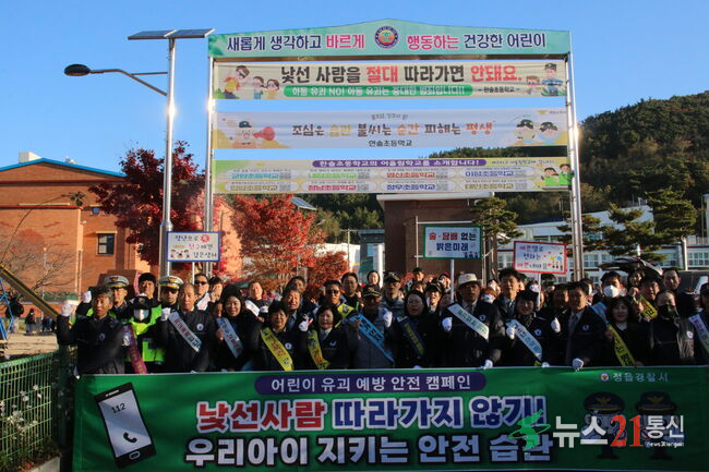 전북특별자치도 정읍경찰서는 지난 21일 한솔초등학교 정문에서 미성년자 약취‧유인 예방 및 인식