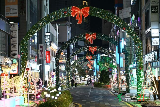 삼산디자인거리에는 샹들리에트리 오브제 조형물과 아치형 리스 구조물의 루미나리에 게이트, 다양한 포토존 조형물 등이 설치돼 포근하고 감성적인 분위기를 조성했고 시민들이 사진 촬영과 함께 추억을 남기기에 적합한 공간으로 꾸며졌다.