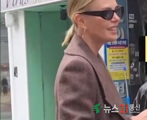 할리우드 배우 샤를리즈 테론이 최근 서울 홍대에서 목격됐다. SNS에는 테론을 본 누리꾼의 인증 사진과 목격담이 올라왔다.