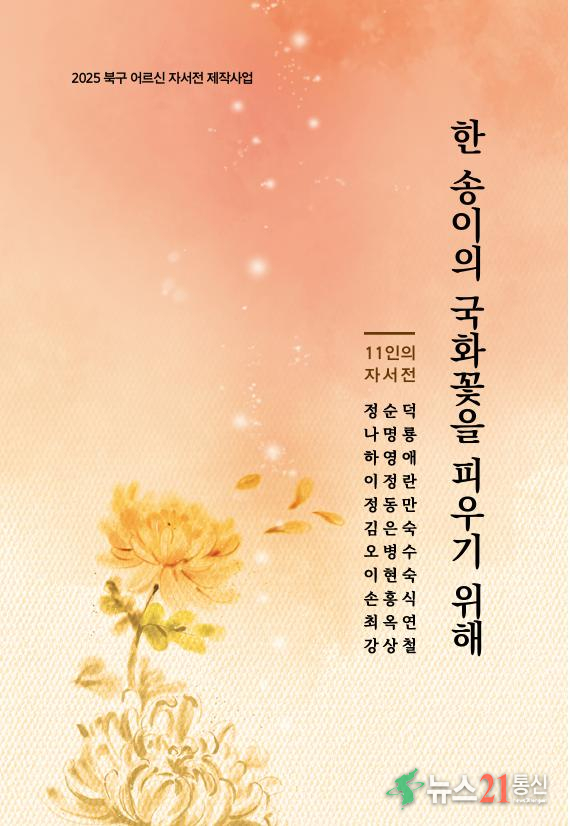 [뉴스21통신/전배룡기자] 광주광역시 북구가 오는 26일 ‘어르신 자서전 제작사업’으로 만들어진 『한 송이의 국화꽃을 피우기 위해』 출판을 기념하는 기념행사를 개최한다고 25일 밝혔다.