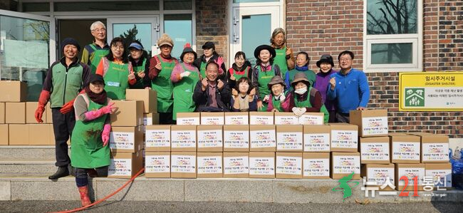 원주시 지정면새마을회(부녀회장 윤용우, 지도자협의회장 김선동)는 지난 20일 지정면 복지회관에서 사랑의 김치 나눔 행사를 진행했다.