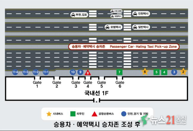 한편, 한국공항공사는 승용차‧예약택시 전용 승차존 운영과 함께 장기 주정차 방지 계도 및 단속, 승차존 안내 사인물 정비, 승차 안내방송 송출, 도로 노면표시 정비 등 종합적인 교통개선대책도 함께 추진하고 있다.