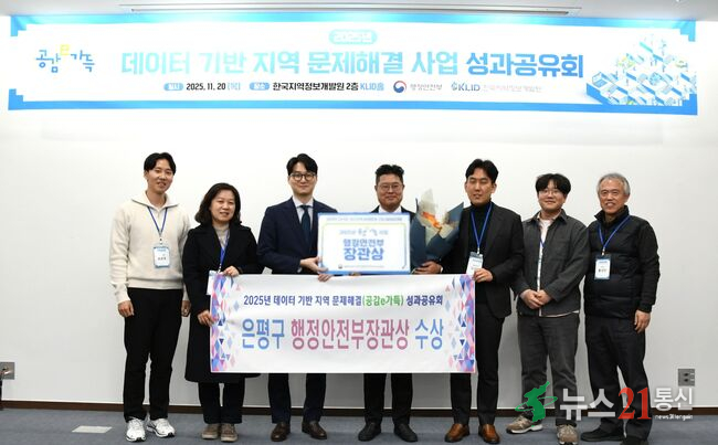 서울 은평구(구청장 김미경)는 지난 20일 한국지역정보개발원 KLID홀에서 열린 성과공유회에서 ‘2025년 데이터 기반 지역 문제해결(공감e가득) 사업’에서 AI-IoT 기반 전동보장구 이동 안전 플랫폼 구축 성과를 인정받아 행안부장관상을 받았다고 밝혔다.
