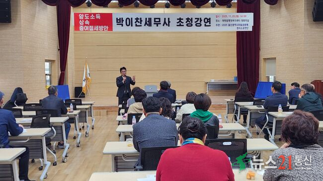울주군 청량읍 주민자치위원회가 25일 청량읍 행정복지센터 대회의실에서 박이찬 세무사 초청강연을 개최했다.