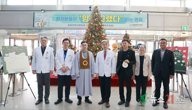 원광대학교병원(병원장 서일영)이 지난 24일(월) 외래동 1층 로비에서 서일영 병원장을 비롯, 주요 임직원이 함께한 가운데 오는 2026년 환자, 내원객 및 직원들의 건강과 희망, 화합과 소망을 기원하는 “2026 건강 기원 희망 트리 점등식”을 가졌다.