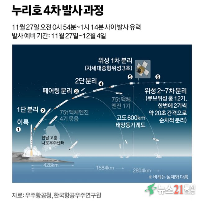 [뉴스21 통신=추현욱 ]오는 27일 새벽 우주로 향하게 될 누리호가 전남 고흥 나로우주센터 발사대에 무사히 안착했다.