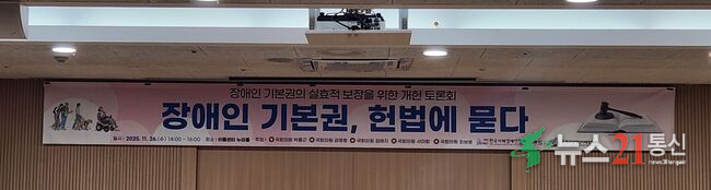 2025년 11월 26일(수) 오후 2시, 이룸센터 누리홀에서 장애인의 헌법적 권리 보장을 위한「장애인 기본권」개헌 토론회가 성황리에 열렸다. 이번 토론회는 장애인의 기본권을 명확히 헌법에 규정하고 실효성을 강화하기 위한 사회적 논의의 장으로 마련되었으며, 장애계와 정치권, 그리고 다양한 시민단체 관계자들이 참석하여 높은 관심을 보였다.