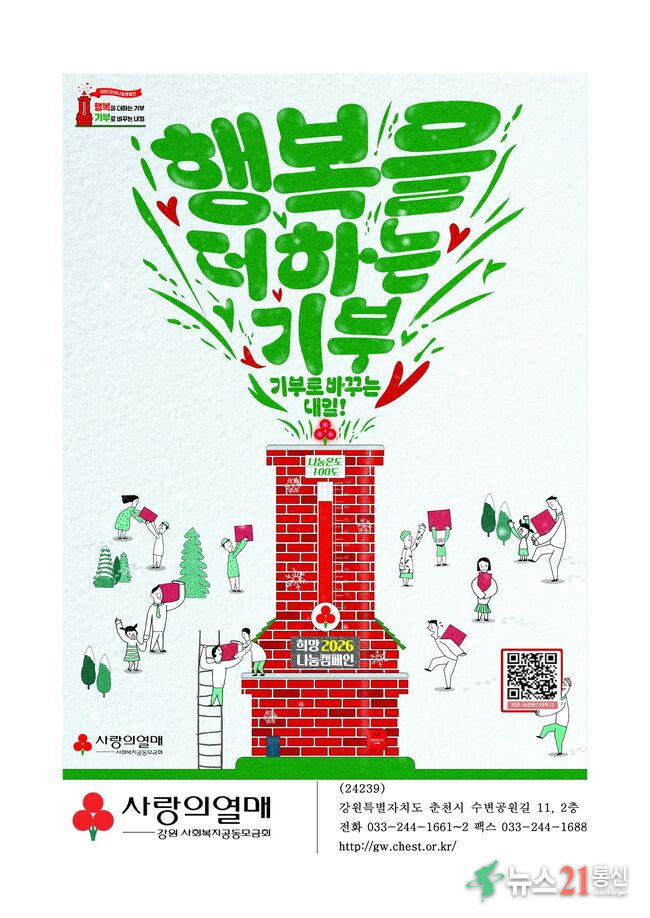 이번 캠페인은 강원도사회복지공동모금회의 슬로건 ‘행복을 더하는 기부, 기부로 바꾸는 강원’을 바탕으로, 개인 기부와 나눔 문화 확대를 목적으로 진행된다.
