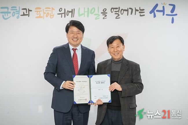 인천 서구(구청장 강범석)는 지난 25일 사회적협동조합 하늘샘배움터(대표 조규호)와 아이사랑꿈터 11호점 위수탁 계약을 체결했다고 밝혔다. 가정동 포레나 루원시티(서곶로 120) 커뮤니티센터 2층에 위치한 11호점은 내년 1월 중 문을 열고 본격적인 운영을 시작할 예정이다.