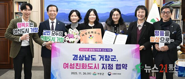[뉴스21 통신=김희백 사회2부기자] 거창군은 성평등가족부로부터 지난 26일 ‘여성친화도시’로 공식 지정됐다고 27일 밝혔다. 그동안 성평등 정책 추진 기반 구축, 군민 안전망 구축, 돌봄 환경 조성 등에서 보여준 성과가 인정받은 결과이다.