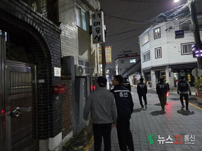 의정부시 흥선동행정복지센터(권역국장 한상규)는 11월 25일 흥선 마을연구소 활동가들이 흥선동 자율방범대, 가능지구대와 함께 방범 취약구역을 중심으로 ‘범죄 예방을 위한 민‧관‧경 협업 야간 순찰’을 실시했다고 밝혔다.
