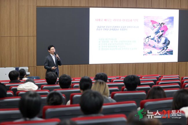 이상일 용인특례시장은 26일 오후 단국대학교 국제관에서 단국대 학생 100여 명을 대상으로 ‘사례로 배우는 리더의 리더십과 덕목’이라는 주제로 1시간 50분 동안 특강을 했다.