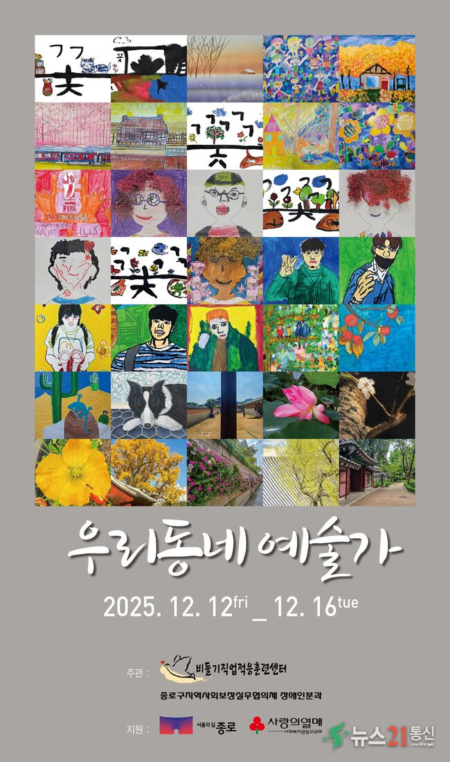 종로구 혜화아트센터에서 오는 12월 12일(금) 오후 3시, 지역 예술문화 나눔 프로젝트 '우리동네 예술가' 오픈식이 개최된다. 이번 행사는 비둘기적응훈련센터와 종로구지역보장실무협의체 장애인분과가 공동 주관하며, 종로구청과 사랑의열매의 후원으로 진행된다.