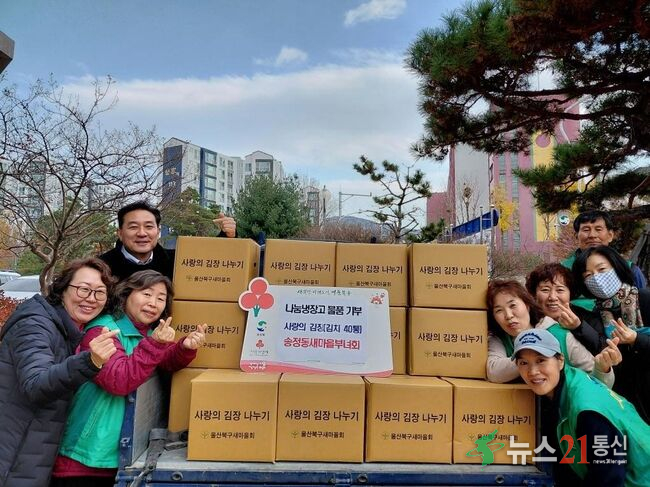 북구 송정동 새마을부녀회는 27일 송정동 나눔냉장고에 직접 담근 김장김치 40박스를 기부했다.