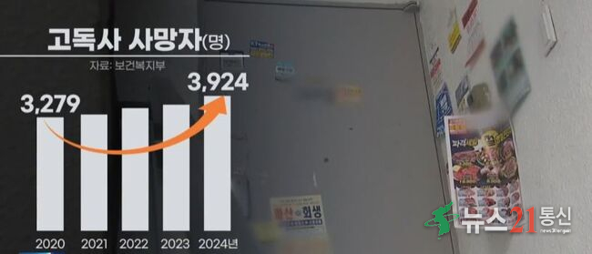 보건복지부 조사에 따르면 지난해 고독사로 숨진 사람은 3,900여 명으로 5년 연속 증가했다.