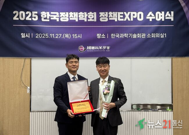 ‘2025 정책엑스포는 국내 최고 권위의 공공정책 분야 학술 연구단체인 한국정책학회가 주관하는 행사로 공공기관의 정책 혁신 성과를 발굴·공유하고국민 중심 행정서비스 실현에 기여한 기관과 인물을 선정해 시상했다.