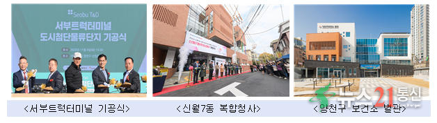 신월7동 주민센터는 34년 만에 어린이집과 어르신복지센터를 갖춘 복합청사로 새롭게 이전했으며, 신월1·2동 주민센터도 실시설계 후 내년 착공을 앞두고 있다.