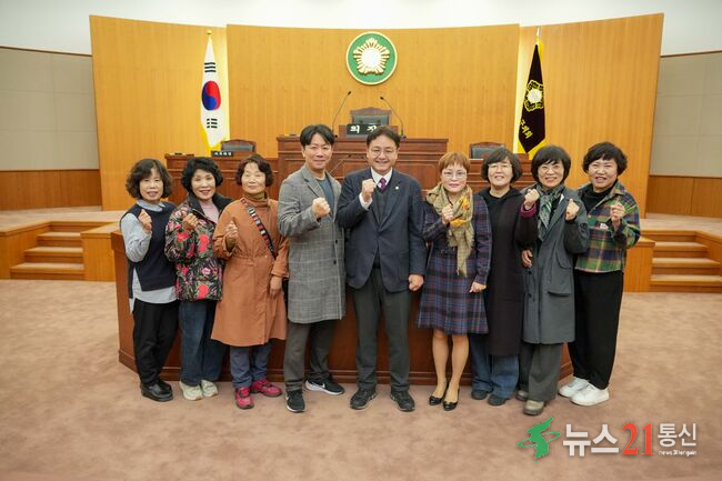 김상태 울산북구의회 의장이 28일 의회를 방문한 유일진 농소3동 바르게살기위원회 위원장 및 회원단과 간담회를 갖고 공동체 의식 함양 및 법질서 지키기 사업 현안을 논의한 뒤 본회의장에서 기념촬영을 했다.