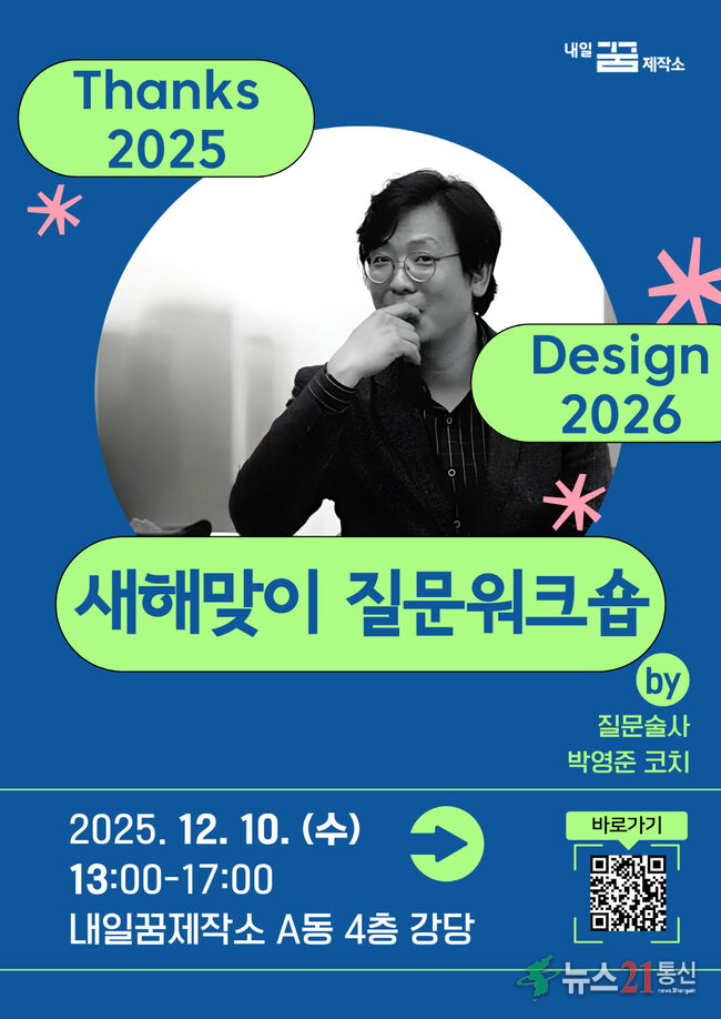 ‘새해맞이 질문워크숍’은 내일꿈제작소 A동 4층 강당에서 12월 10일 수요일 오후 1시부터 5시까지 진행된다.