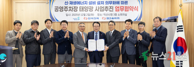 익산시는 2일 한국전력 전북본부·켑코솔라와 공영주차장 태양광 설치 협약을 체결하며, 최근 개정된 '신재생에너지법'에 대해 전북 도내 지자체 최초로 대응에 나섰다.