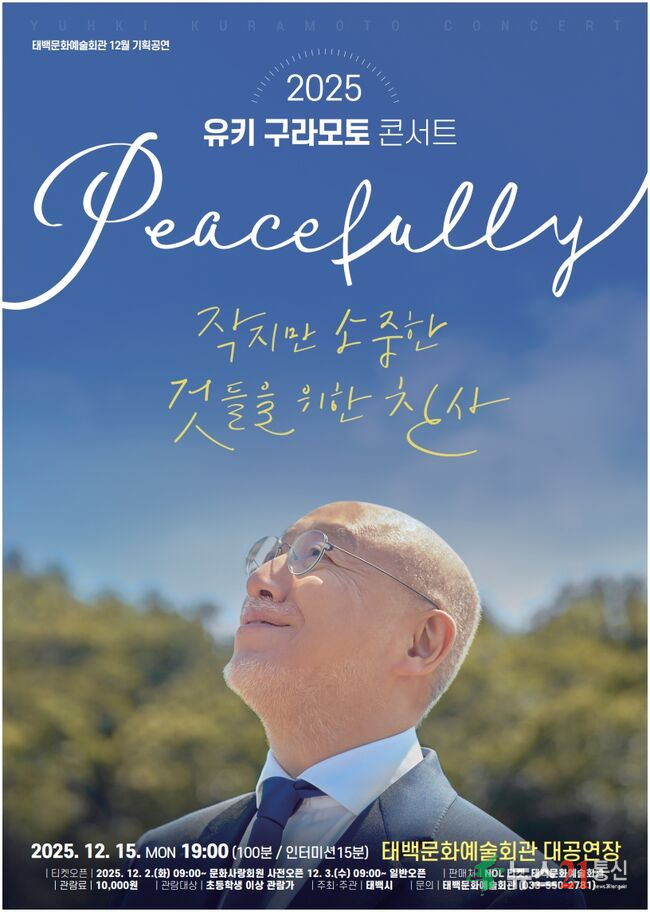 태백시는 오는 12월 15일 오후 7시 태백문화예술회관 대공연장에서 ‘유키 구라모토 콘서트’를 개최한다고 밝혔다.