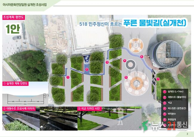 평면도 아시아문화전당일원 실개천 조성사업광주광역시는 5일 오후 2시 전일빌딩245 8층 다목적강당에서 ‘아시아문화전당 실개천 조성사업 주민설명회’를 연다.
