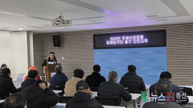 [뉴스21 통신=이종수 ]충남 아산시(시장 오세현)는 아산경찰서와 협업해 2026년 유해야생동물 피해방지단 안전교육을 실시했다. 유해야생동물 피해방지단은 매년 전문 수렵인을 중심으로 모집·선발되며 고라니, 멧돼지 등 야생동물로 인한 농작물 및 인명 피해를 예방하고 아프리카돼지열병(ASF) 등 질병 확산을 방지하기 위해 운영되고 ...