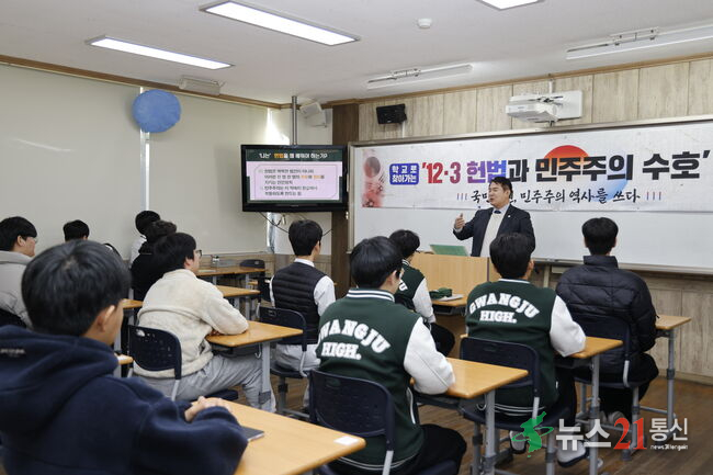 이날 특강은 시교육청에서 지정한 ‘헌법과 민주주의 수호기간’을 맞아 기획됐다. 특히 ‘헌법과 민주주의 수호’를 주제로 학생들이 최근 헌정 위기 상황을 바르게 인식하고 헌법의 가치를 되새길 수 있도록 돕기 위해 마련됐다.