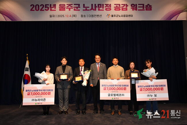 울주군노사공감센터(센터장 김재인)가 4일 울주군 삼남읍 더M컨벤션에서 이순걸 울주군수와 최길영 군의회 의장 등 울주군 노사민정협의회 위원을 비롯한 관계자 60여명이 참석한 가운데 ‘2025년도 울주군 노사민정 공감 워크숍’을 개최했다.