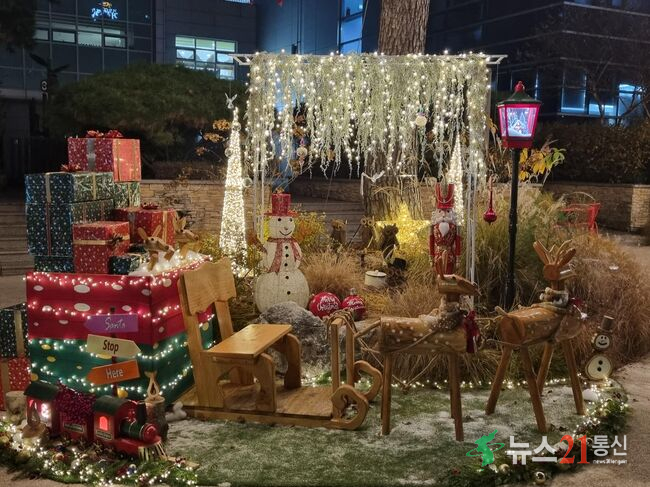 사계절 푸른 회양목과 흰말채나무 길, 눈사람과 루돌프 장식 등 다양한 경관 요소로 겨울철 생동감을 더했다.