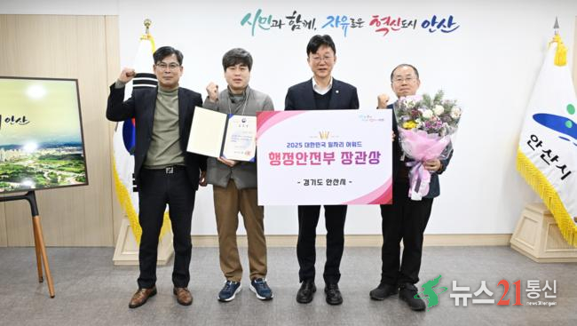 이민근 안산시장(오른쪽 두번째)[사진=안산시]안산시(시장 이민근)는 행정안전부와 한국일보가 공동 주최한 ‘2025 대한민국 일자리 어워드’에서 행정안전부 장관상을 수상하며 5년 연속 일자리 분야 장관상의 영예를 안았다고 2일 밝혔다.