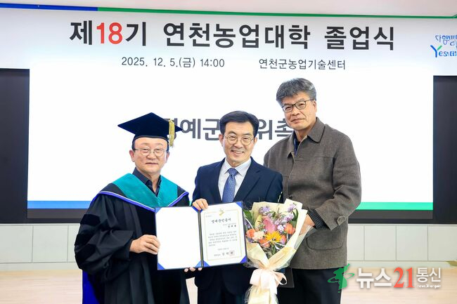 연천군농업기술센터는 지난 5일 ‘제18기 연천농업대학 졸업식’을 성황리에 개최했다.올해 연천농업대학은 스마트농업과, 농산업창업과 2개 과정으로 운영됐으며 총 41명이 교육에 참여했다.스마트농업과는 스마트농업 분야 전문가를 중심으로 미래농업 관련 이론교육, 현장견학, 실습교육 등을 체계적으로 추진했으며, 스마트팜 정...