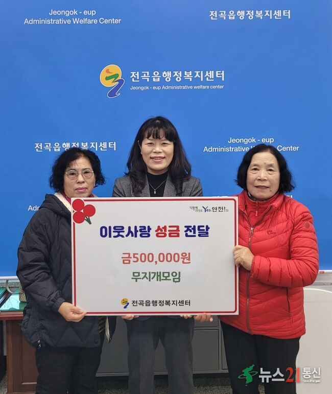 연천군 전곡읍 무지개 모임(회장 장분례)은 12월 8일 지역사회 어려운 이웃을 돕기 위해 성금 50만 원을 경기 사회복지공동모금회를 통해 전곡읍지역사회보장협의체에 기탁했다.무지개 모임은 10명의 회원으로 구성된 자발적 봉사단체로, 야외 운동기구 청소와 가로환경 정비 등 다양한 환경정화 활동을 이어오고 있다.장분례 회장은 “회...