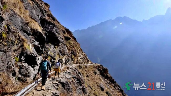 태자협은 중국 서남부 차마고도 구간 중 하나로, 계곡과 협곡 사이를 걷는 트레킹 코스로 알려진 곳이다.