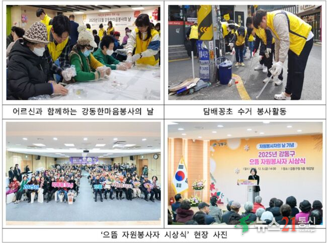강동구는 지난 5일 강동구청 대강당에서 ‘2025년 강동구 으뜸 자원봉사자 시상식’을 열고 한 해 동안 지역을 위해 헌신한 봉사자들에게 감사의 뜻을 전했다.