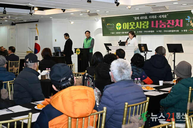 구리시는 지난 9일 아르비아웨딩홀에서 구리시새마을부녀회 주관으로 ‘2025년 이웃사랑 나눔잔치’를 열었다. 이날 행사에는 새마을부녀회 회원 70명이 참여해 홀로 어르신과 취약계층 150명에게 생신상 음식과 겨울철 방한용품을 전달했다. ‘이웃사랑 나눔잔치’는 매년 지역 내 어려운 이웃에게 나눔과 돌봄 문화를 전하기 ..