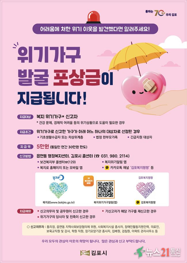 강영화 복지과장은 “위기 상황에 놓인 이웃을 발견하면 적극 제보해 달라”고 당부했다. 상담이나 제보는 콜센터와 앱, 카카오톡 채널을 통해 가능하다.