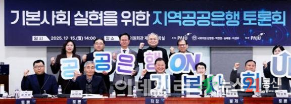 [뉴스21 통신=추현욱 ] 파주시가 지역 금융의 대안으로서 지역공공은행의 필요성과 추진 방향을 모색하는 자리를 가졌다.경기 파주시는 지난 15일 지난 15일 국회의사당 의원회관에서 ‘기본사회 실현을 위한 지역공공은행 토론회’를 개최했다고 16일 밝혔다.파주시와 박정현·송재봉·허성무 국회의원이 공동 주최해 열린 이.
