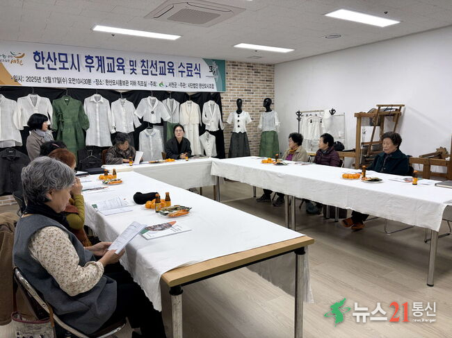 서천군은 17일 한산모시홍보관에서 ‘2025년도 한산모시 후계인력 육성교육 및 전문 침선교육’ 수료식을 진행했다.