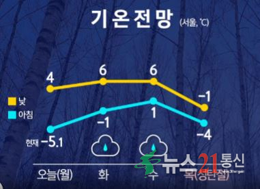 낮에도 서울의 기온은 4도에 그쳐 종일 춥겠다.
